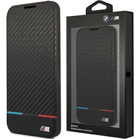 Ekskluzywne etui BMW z serii M Collection. Etui typu bookcase wykonane z połączenia termoplastycznego poliuretanu i syntetycznego karbonu.