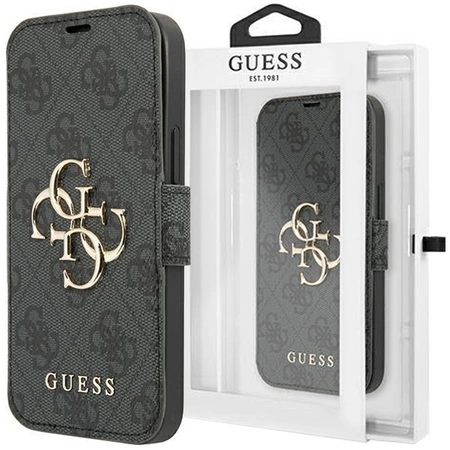 - 1 x Etui Guess GUBKP13L4GMGGR na iPhone 13 Pro / 13 - szare book 4G Big Metal Logo