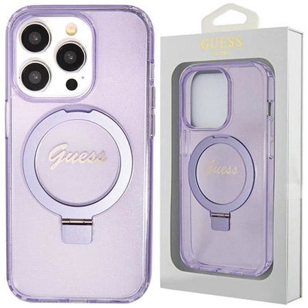 - 1 x Etui Guess Ring Stand Script Glitter MagSafe na iPhone 11 / Xr - fioletowe
