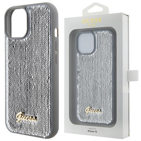 - 1 x Etui Guess Sequin Script Metal na iPhone 15 - srebrne