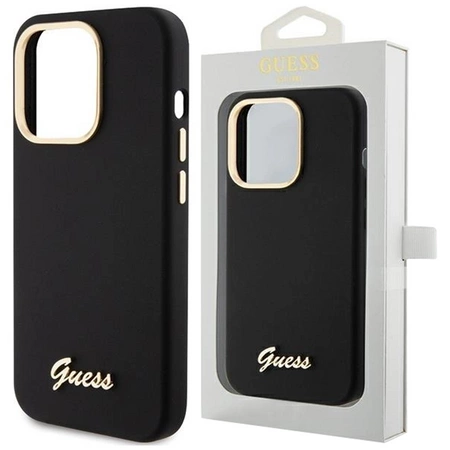 Etui Guess Silicone Script Metal Logo & Frame na iPhone 15 Pro Max - czarne