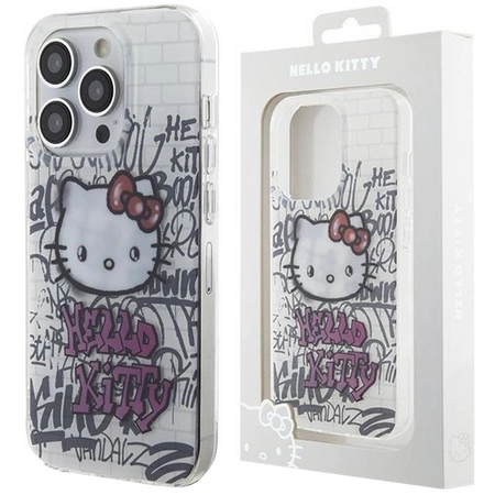 - 1 x Etui Hello Kitty IML Kitty On Bricks Graffiti na iPhone 15 - białe