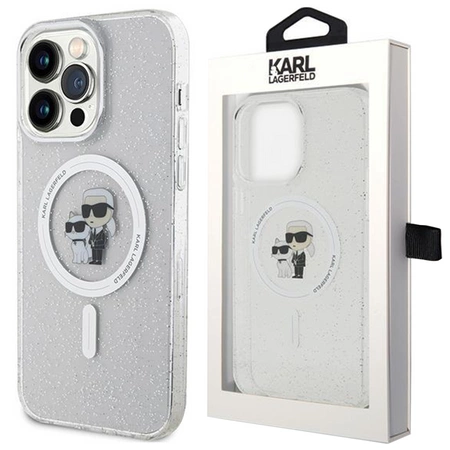 - 1 x Etui Karl Lagerfeld Karl&Choupette Glitter MagSafe na iPhone 15 Pro Max - przezroczyste
