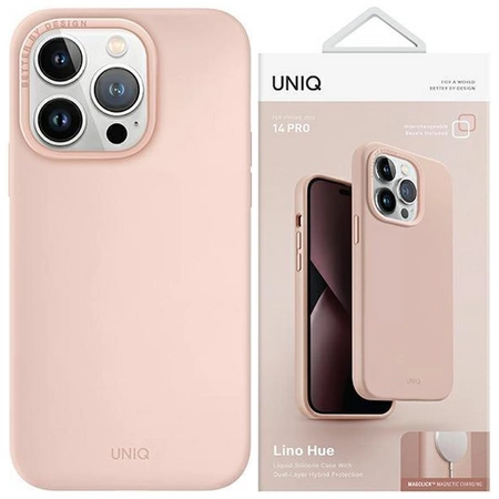 Etui Uniq Lino Hue na iPhone 14 Pro Max Magclick Charging - różowe