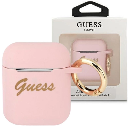- 1 x Guess GUA2SSSI AirPods cover różowy/pink Silicone Vintage Script
