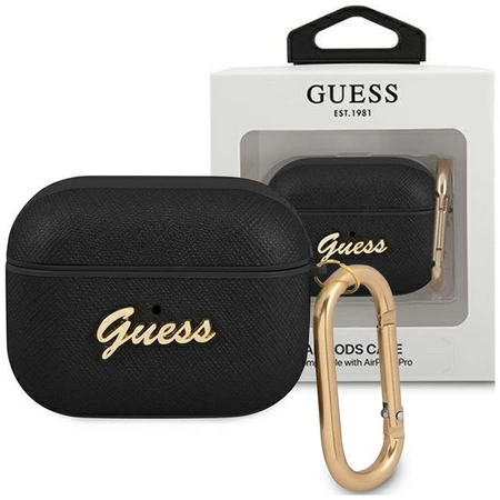 - 1 x Guess GUAPSASMK AirPods Pro cover czarny/black Saffiano Script Metal Collection