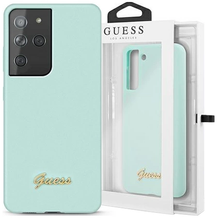 - 1 x Guess GUHCS21LLSLMGLB S21 Ultra G998 niebieski/blue hardcase Silicone Script Metal Logo