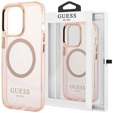 - 1 x Guess GUHMP14MHTCMP iPhone 14 Plus 6,7" różowy/pink hard case Gold Outline Translucent MagSafe