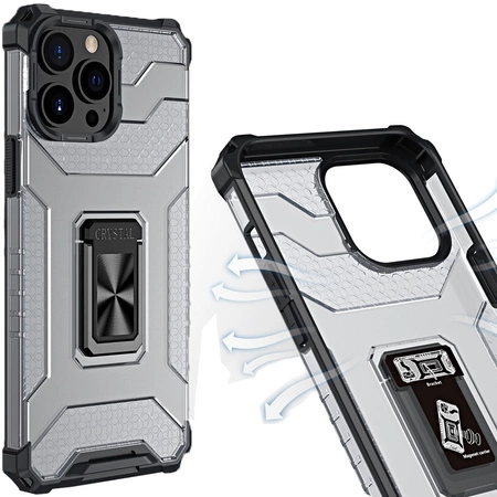 Dla Ciebie, kto szuka idealnego połączenia estetyki, jakości i funkcjonalności, Crystal Ring Case to wybór, który w pełni odpowiada Twoim wymaganiom. Niezależnie od tego, czy na co dzień używasz telefonu intensywnie, czy bardziej dbasz o jego wygląd, to etui ma wszystko, czego potrzebujesz. Twarda warstwa poliwęglanowa, połączona z elastycznym TPU, zapewnia nie tylko ochronę przed wstrząsami i zarysowaniami, ale również wygodę użytkowania dzięki precyzyjnie wykonanym wycięciom. Jego klasyczny czarny kolor pasuje do każdej okazji, a magnetyczny uchwyt sprawia, że zawsze masz swój telefon w zasięgu ręki.