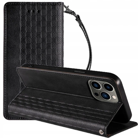 - 1x Magnet Strap Case etui iPhone 14 Pro pokrowiec z klapką portfel mini smycz podstawka czarne