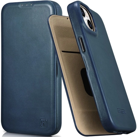 iCarer CE Oil Wax Premium Leather Folio Case skórzane etui iPhone 14 Plus z klapką magnetyczne MagSafe niebieski (AKI14220707-BU)