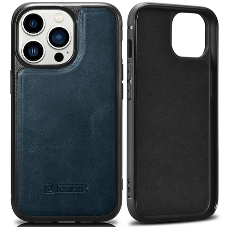iCarer Leather Oil Wax etui pokryte naturalną skórą do iPhone 14 Pro (kompatybilne z MagSafe) niebieski (WMI14220718-BU)