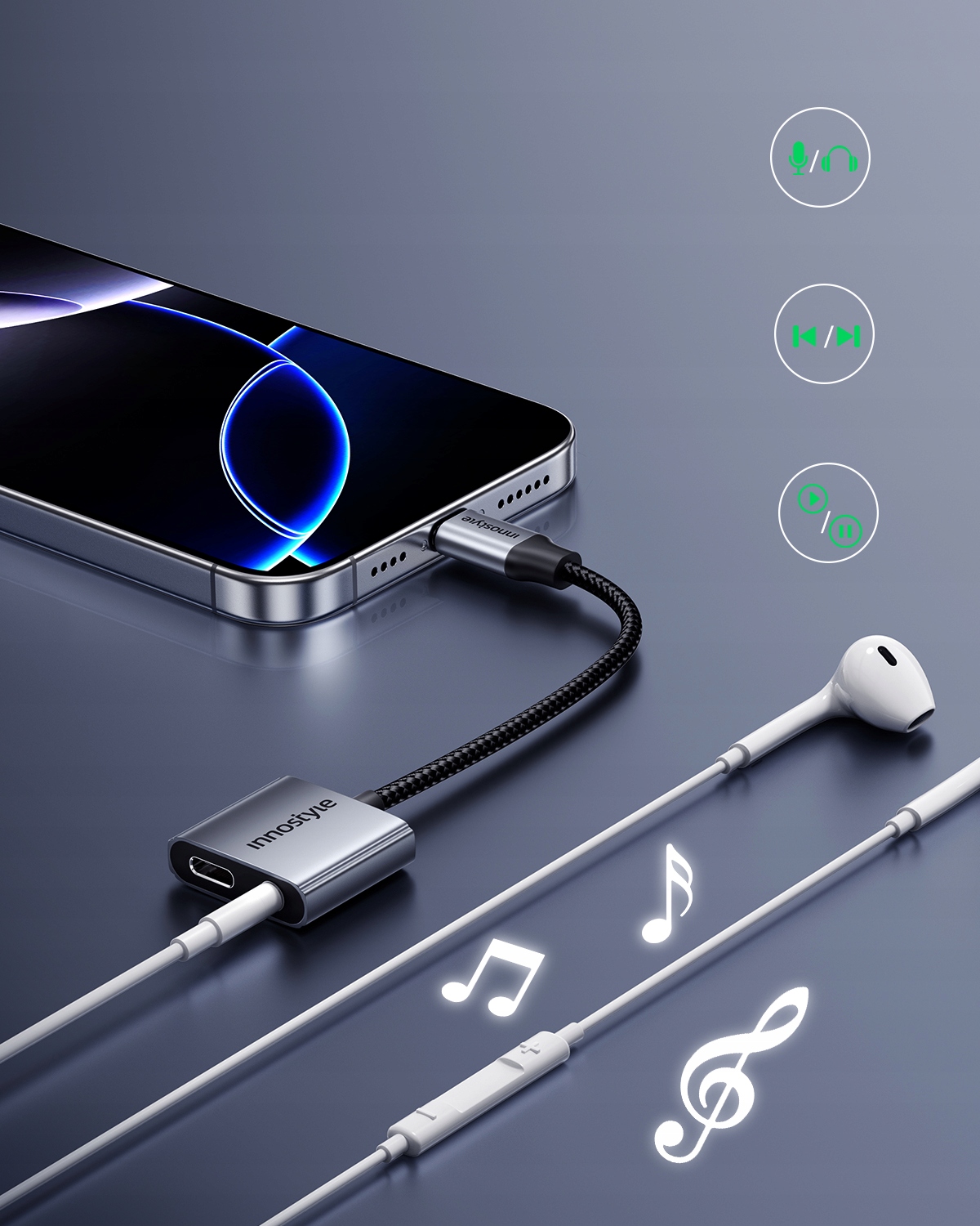 - Czy Innostyle NexaLink obsługuje funkcję rozmów i sterowanie ze słuchawek?Tak! Adapter wspiera zarówno sterowanie muzyką, jak i rozmowy telefoniczne przez słuchawki, co czyni go idealnym rozwiązaniem do codziennego użytku – nie musisz sięgać po telefon, aby kontrolować swoje audio lub odbierać połączenia.