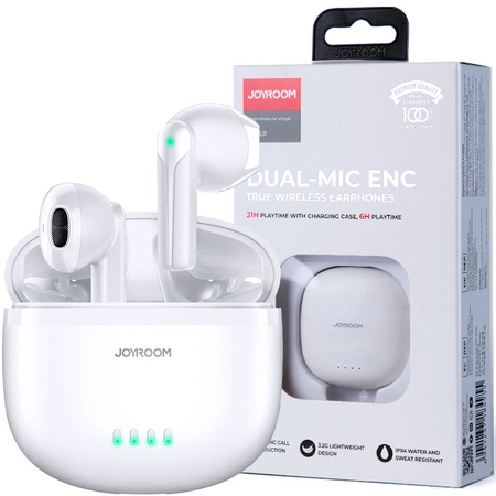 - 1 x Joyroom słuchawki TWS bezprzewodowe ENC wodoodporne IPX4 Bluetooth 5.3 biały