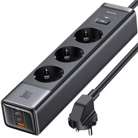 Brakuje Ci wolnych gniazdek? Postaw na porządek i wygodę! Mcdodo PowerStrip to listwa zasilająca, która zaspokoi wszystkie Twoje potrzeby! Wyposażona w 3 gniazda AC, 2 porty USB-C i 1 port USB o mocy 30W, pozwala zasilić aż 6 urządzeń jednocześnie. Ładuj smartfony, zegarki, laptopy i inne urządzenia, eliminując chaos kabli i zbędnych ładowarek. Zapewnij sobie funkcjonalność i porządek na biurku z Mcdodo PowerStrip!