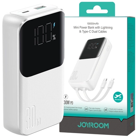 - 1 x Mini powerbank z wbudowanymi kablami Joyroom JR-PBC06 30W 10000mAh - biały