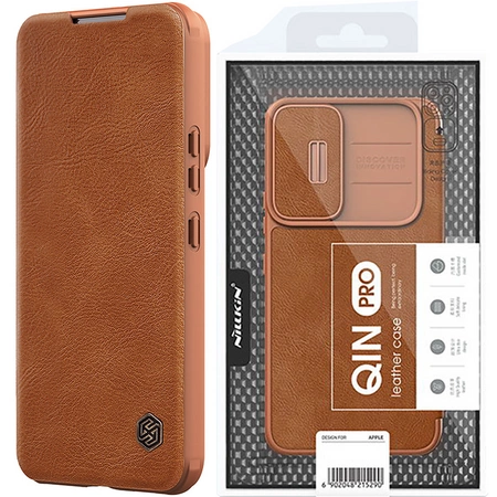 Nillkin Qin Leather Pro Case etui do Samsung Galaxy S22+ (S22 Plus) osłona na aparat kabura pokrowiec obudowa z klapką brązowy
