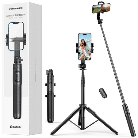 - 1 x Selfie stick / kijek teleskopowy ze stojakiem i pilotem Bluetooth 1.5m Ugreen LP586 - czarny