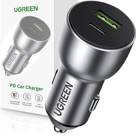 - Ugreen ładowarka samochodowa USB / USB Typ C Quick Charge 3.0 Power Delivery 36 W 3 A szary