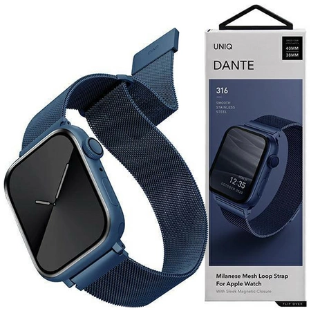 - 1 x UNIQ pasek Dante Apple Watch Series 4/5/6/7/8/SE/SE2 38/40/41mm Stainless Steel niebieski/cobalt blue