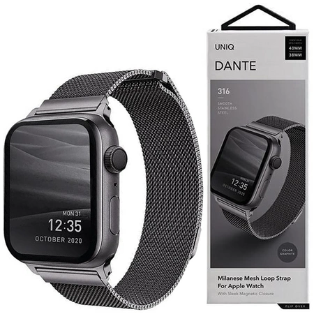 - 1 x UNIQ pasek Dante Apple Watch Series 4/5/6/7/8/SE/SE2 42/44/45mm Stainless Steel grafitowy/graphite